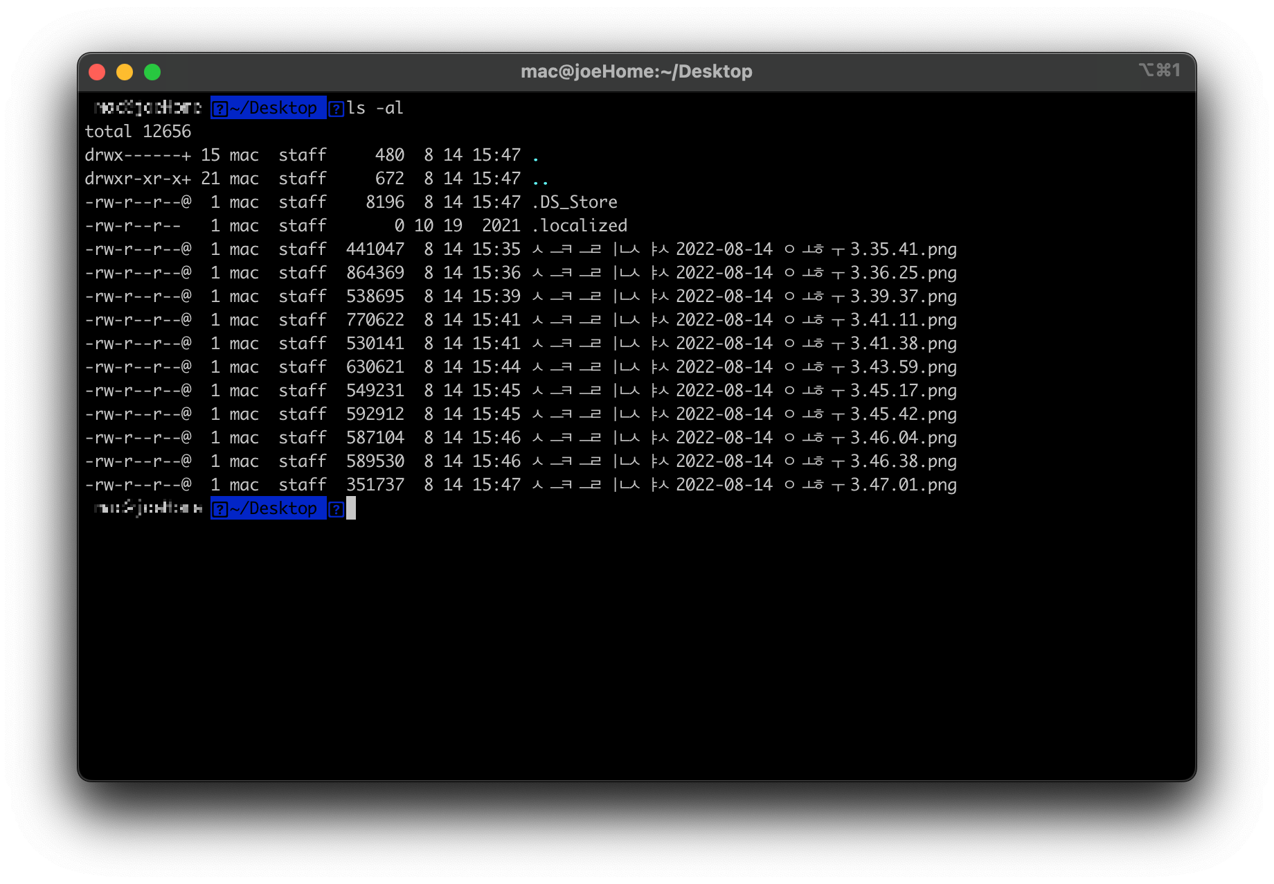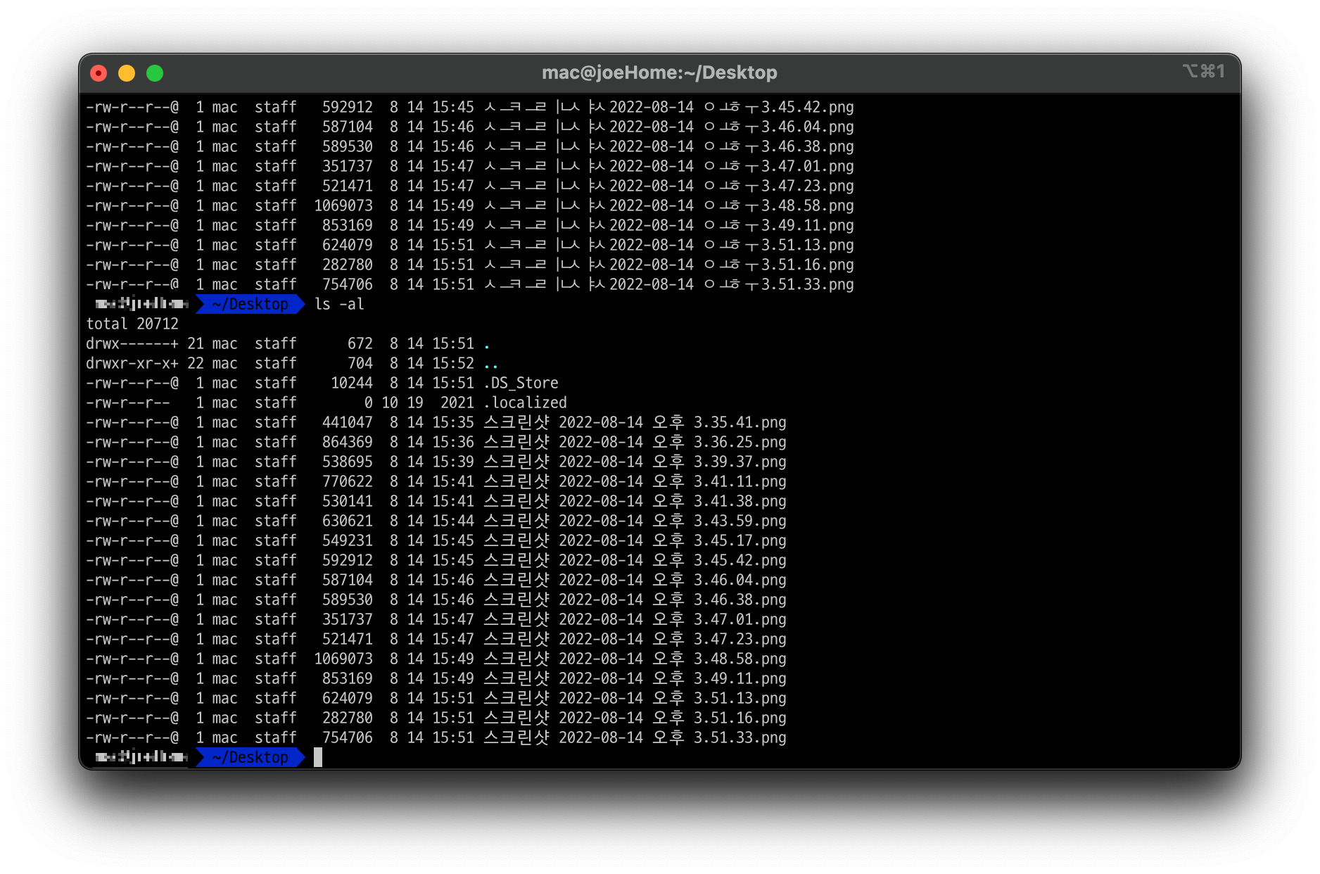 iterm2 스타일 적용 후 모습 모든 작업은 ~에서 작업됩니다. 경로 이동시 세팅에 문제가 있을 수 있습니다.