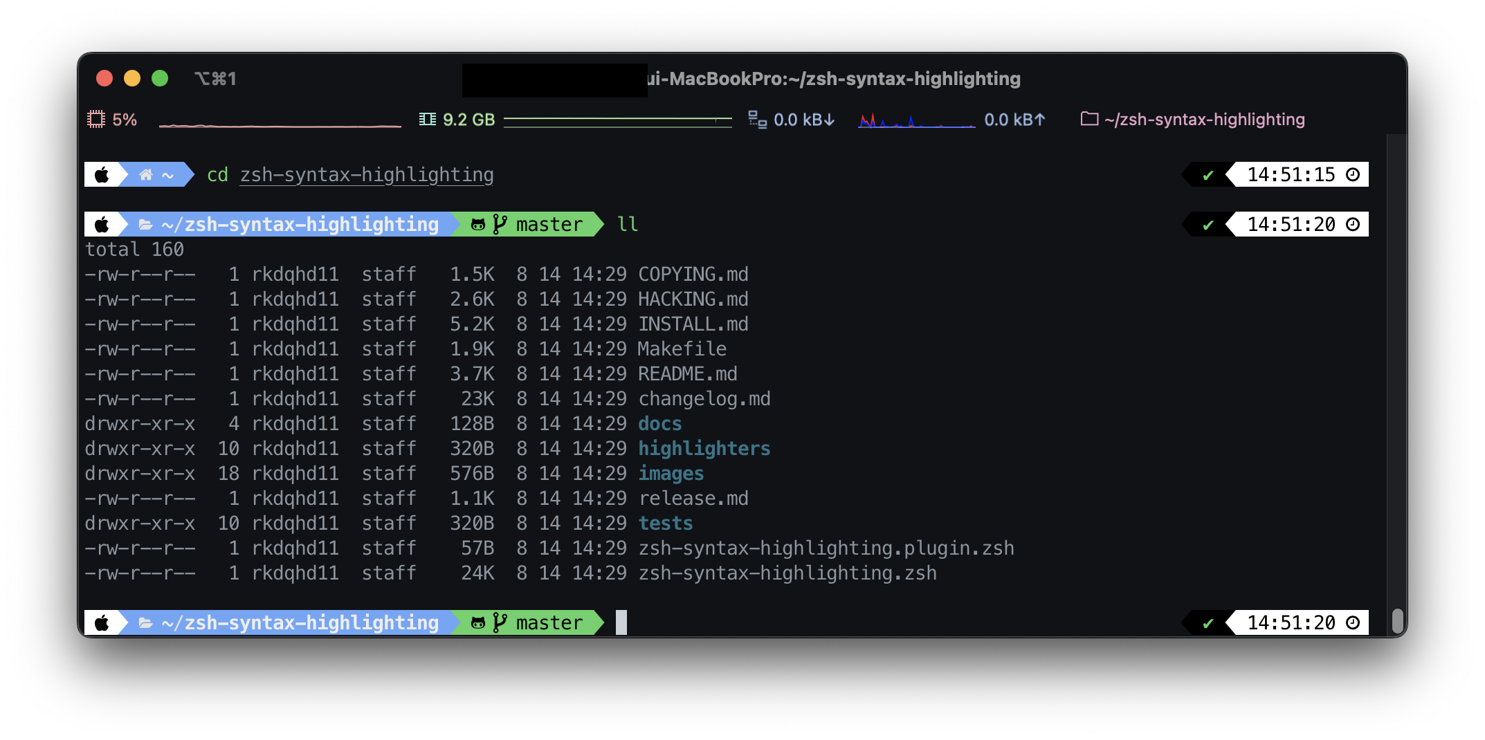 2022.08.15 - [IT/Tool] - [MAC] iTerm2 꾸미기 (powerlevel10k, sysntaxt highlighting, status bar 등)