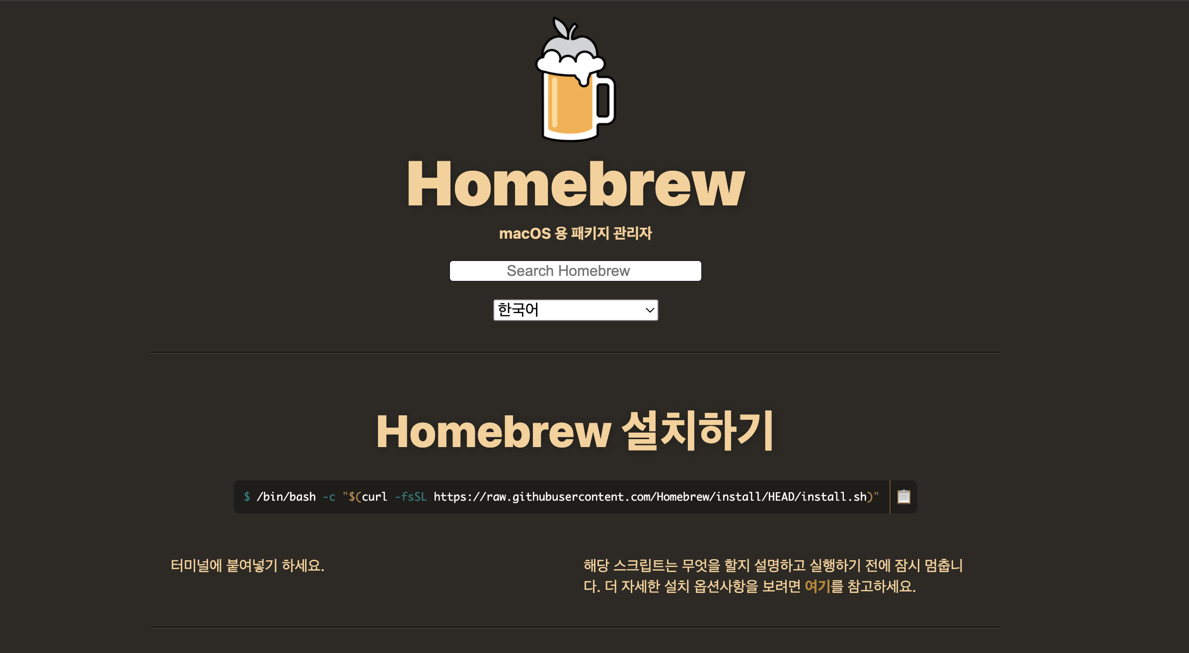 homebrew 홈페이지 iterm에 아래 명령어 복사 붙여넣기 후 엔터