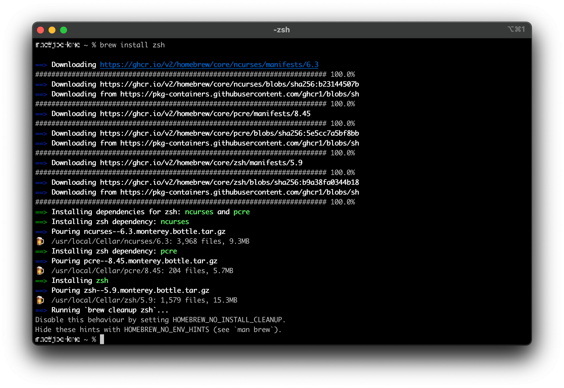 brew install zsh중간에 password 입력하라고 나오면 mac의 password를 입력한다.