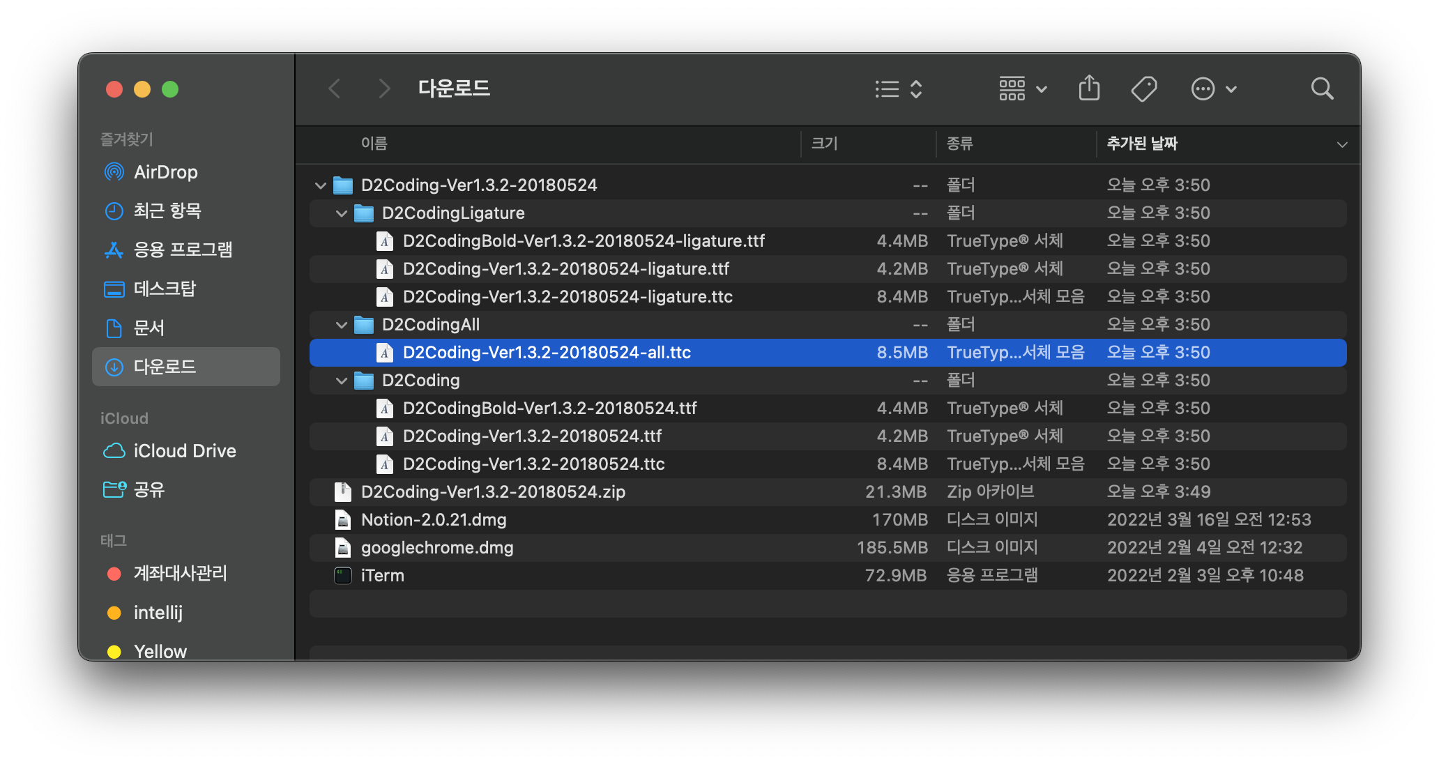 링크 : D2coding 다운로드